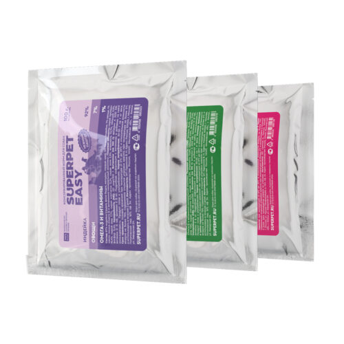 Внимание! Стартовый набор состоит из двух видов питания и доставляется в замороженном виде. После получения переложите пакетики SUPERPET WILD в морозильник, а пакетики SUPERPET EASY оставьте на хранение при комнатной температуре.
