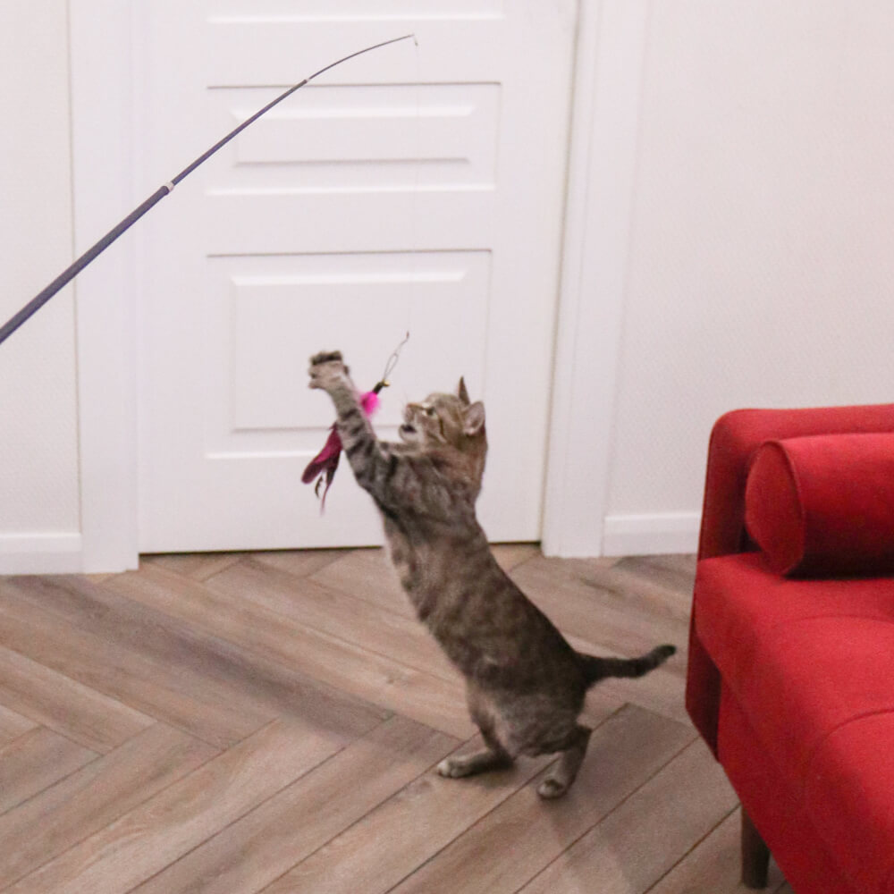 Телескопическая удочка — идеальное решение для активных игр, источник положительных эмоций для вас и вашего пушистого друга. Игрушка подходит для любого возраста, будет интересна как котенку: помогает в интеллектуальном развитии, так и взрослой кошке: развивает охотничьи инстинкты, улучшает координацию движений и поддерживает тонус.