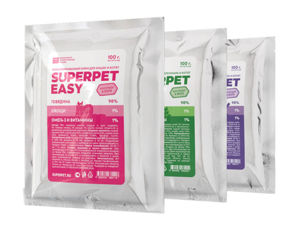 Упаковано удобно легко хранить в морозильнике. У меня кошка и кот и оба теперь на суперпет первую неделю